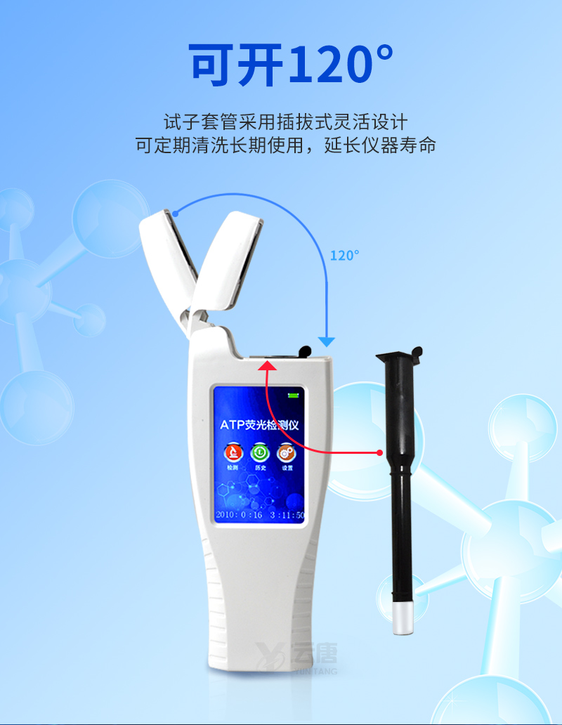 ATP熒光檢測儀操作采用生物化學反應方法檢測ATP含量,ATP熒光檢測儀基于螢火蟲發(fā)光原理,利用“熒光素酶—熒光素體系”快速檢測三磷酸腺苷(ATP)。ATP拭子含有可以裂解細胞膜的試劑,能將細胞內(nèi)ATP釋放出來,與試劑中含有的特異性酶發(fā)生反應,產(chǎn)生光,再用熒光照度計檢測發(fā)光值,微生物的數(shù)量與發(fā)光值成正比,由于所有生物活細胞中含有恒量的ATP,所以ATP含量可以清晰地表明樣品中微生物與其他生物殘余的多少,用于判斷衛(wèi)生狀況。