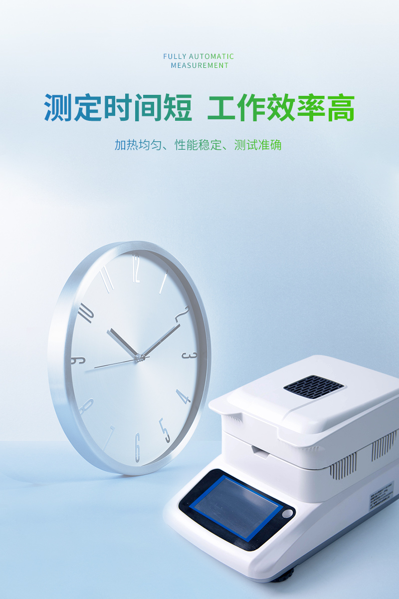 該系列快速水分測定儀應(yīng)用了國際烘箱干燥法原理,測定結(jié)果與烘箱法水分測定具有良好的一致性,工作效率卻遠(yuǎn)遠(yuǎn)高于烘箱法水分測定,一般樣品只需要幾分鐘即可測量完畢,因此受到廣大用戶的青睞與好評。